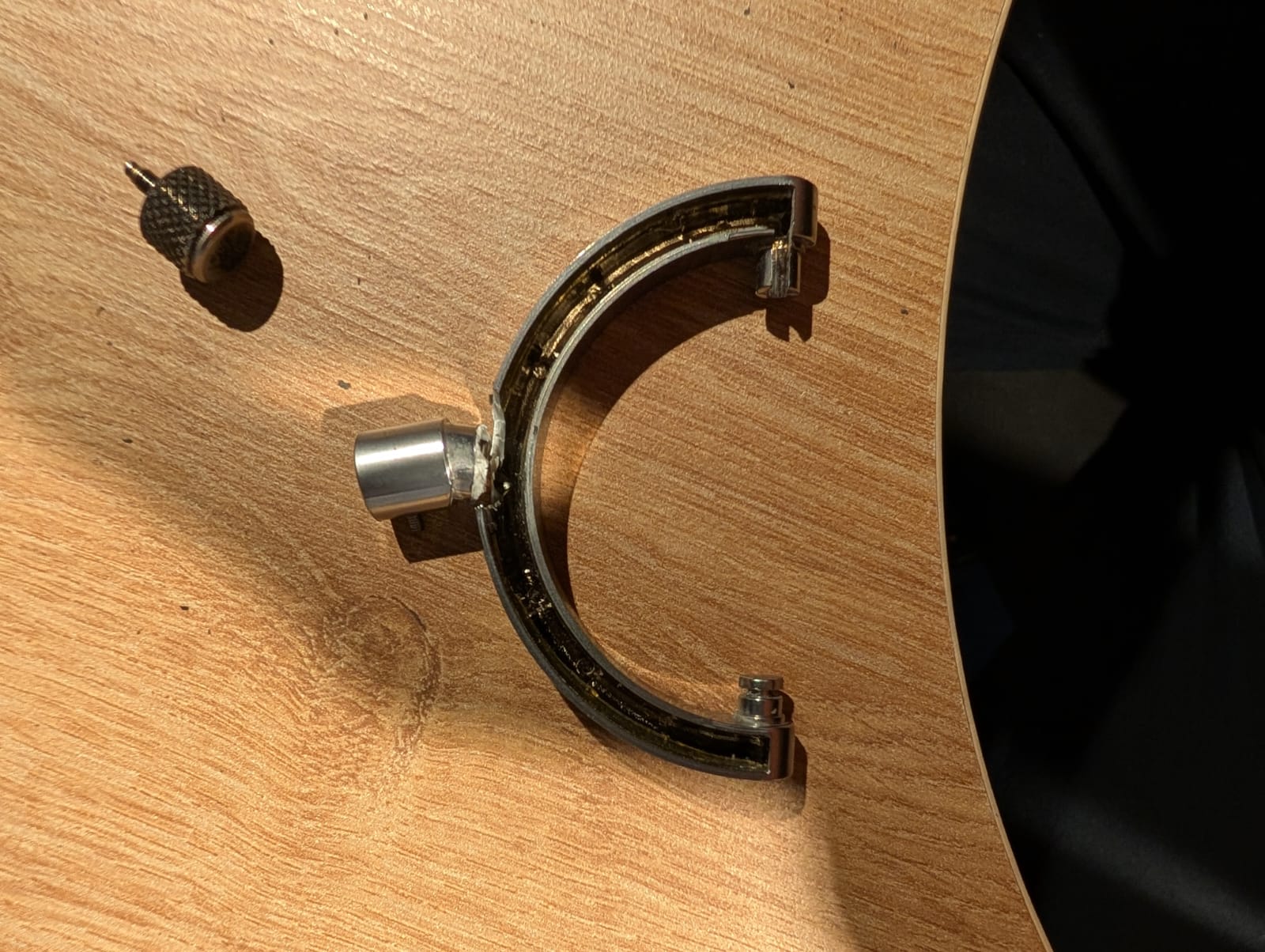 I made a 3D model of the two broken arch pieces and additional holder for the ear pads that were previously glued on.